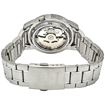Silver-tone stainless steel case and bracelet. Fixed silver-tone stainless steel bezel. White dial with luminous silver-tone hands and index hour markers. Minute markers around the outer rim. Dial Type: Analog. Luminescent hands and markers. Day of the week and date display at the 6 o'clock position. Seiko Caliber 7S26 Automatic movement, based upon Seiko 7002, containing 21 Jewels, bitting at 21600 vph, and has a power reserve of approximately 40 hours. Scratch resistant Hardlex crystal. Pull / push crown. Transparent case back. Round case shape, case size: 38 mm, case thickness: 11 mm. Band width: 20 mm. Fold over clasp. Water resistant at 30 meters / 100 feet. Functions: date, day, hour, minute, second. Series 5 Series. Casual watch style. Watch label: Japan Made. Item Variations: SNKE49K1, SNKE49. Seiko Series 5 Automatic White Dial Men's Watch SNKE49J1.