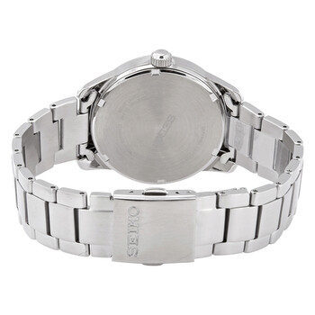 Stainless steel case with a stainless steel bracelet. Fixed stainless steel bezel. Blue dial with silver-tone hands and index hour markers. Minute markers around the outer rim. Dial Type: Analog. Day of the week and date display at the 3 o'clock position. Seiko caliber V158 eco-drive movement. Scratch resistant sapphire crystal. Pull / push crown. Solid case back. Round case shape. Case size: 40 mm. Case thickness: 9.7 mm. Band width: 20 mm. Deployment clasp with a push button release. Water resistant at 100 meters / 330 feet. Functions: date, day, hour, minute, second, solar-powered. Casual watch style. Watch label: Japan Movt. Seiko Solar Blue Dial Stainless Steel Men's Watch SNE525P1.