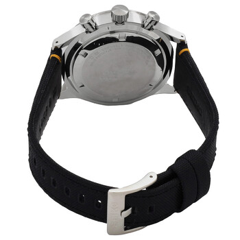Silver-tone stainless steel case with a black nylon strap. Fixed silver-tone stainless steel bezel. Black dial with silver-tone hands and index hour markers. Minute markers around the outer rim. Dial Type: Analog. Luminescent hands and markers. Date display between 4 and 5 o'clock position. Chronograph - three sub-dials displaying: 60 minute, 60 second, 24 hour. Seiko Caliber 8T63 quartz movement. Scratch resistant Hardlex crystal. Solid case back. Round case shape, case size: 43 mm, case thickness: 11.6 mm. Band width: 22 mm. Buckle clasp. Water resistant at 100 meters / 330 feet. Functions: chronograph, date,hour, minute, second. Sport Series. Sport watch style. Watch label: Japan Movt. Seiko Sport Chronograph Quartz Black Dial Men's Watch SSB449P1.