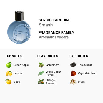 Experience the bold and refreshing scent of Sergio Tacchini Smash, a dynamic men's fragrance that embodies confidence and energy. Launched in 2017, this Aromatic Fougere fragrance is designed for the modern man who appreciates a balance of freshness and warmth.