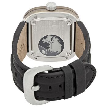 Stainless steel case with a black leather strap. Fixed silver-tone bezel. Silver (cut-out) dial with luminous silver-tone hands and index hour markers. Arabic numeral minute markers (at 5 minute intervals). Minute markers around the outer rim. Dial Type: Analog. Luminescent hands and markers. Small seconds sub-dial. Miyota caliber 82S5 automatic movement, containing 21 Jewels, bitting at 21600 vph, and has a power reserve of approximately 42 hours. Scratch resistant mineral crystal. Solid case back. Square case shape. Case dimensions: 47 mm x 47.6 mm. Band width: 28 mm. Tang clasp. Water resistant at 30 meters / 100 feet. Functions: hour, minute, small second. S-series Series. Casual watch style. Sevenfriday S-series Automatic Silver Dial Men's Watch S2/01.