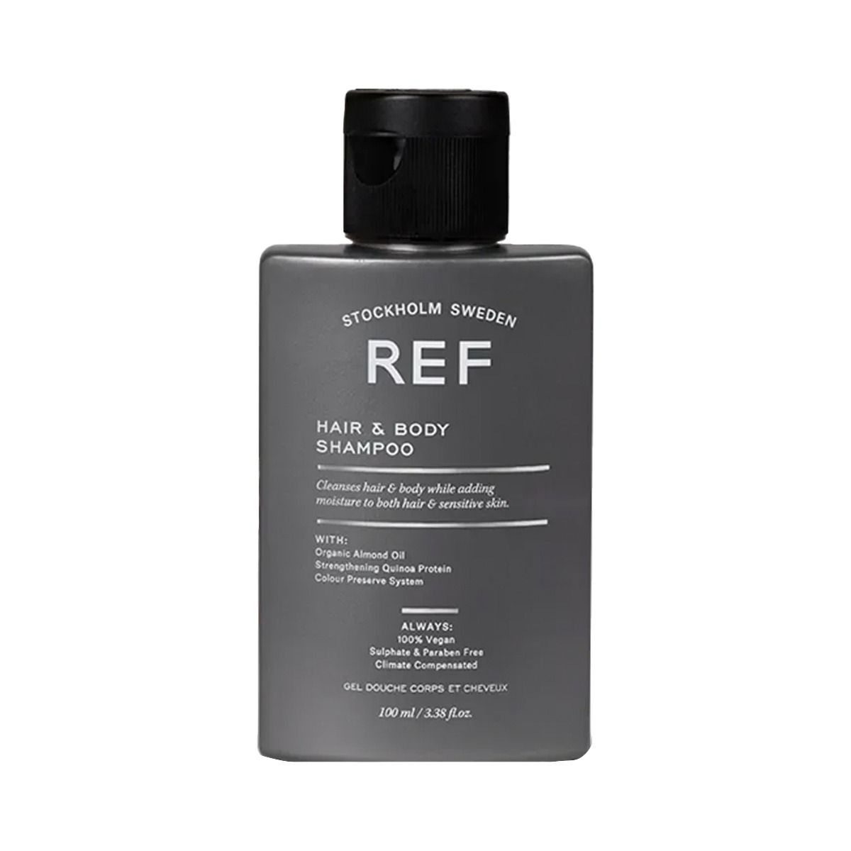 REF Hair & Body თმისა და სხეულის შამპუნი თავის მოვლის მრავალფუნქციური საშუალებაა. გამდიდრებულია ორგანული ინგრედიენტებით, როგორიცაა ქოქოსის ზეთი და ალოე ვერა. პროდუქტი ნაზად ასუფთავს თმას და კანს და ამავდროულად უზრუნველყოფს მსუბუქ დატენიანებას. თმა სუფთა და რბილია, ხოლო კანი - მკვებავი ნივთიერებებით დატენიანებული. პროდუქტი იდეალურია მოგზაურობისთვის, სპორტ-დარბაზში გამოყენებისთვის ან ყველასთვის, ვისაც სურს მარტივი, მაგრამ ამავდროულად სრრულფასოვანი თავის მოვლის საშუალება.