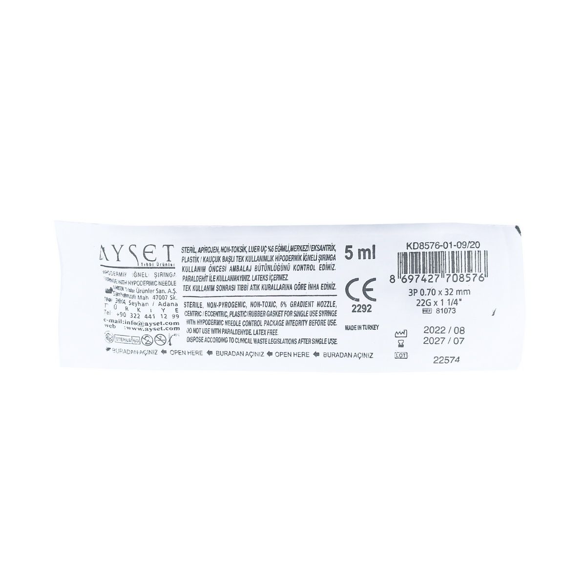 შპრიცი რეზინის დგუშით ერთჯერადი 5მლ