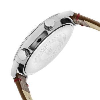 Silver-tone metal case with a brown leather strap. Fixed silver-tone metal bezel. Navy dial with silver-tone hands and index hour markers. Minute markers. World time cities around the outer rim. Dial Type: Analog. Quartz movement. Scratch resistant mineral crystal. Pull / push crown. Solid case back. Round case shape. Case size: 42 mm. Case thickness: 9 mm. Band width: 20 mm. Tang clasp. Water resistant at 30 meters / 100 feet. Functions: hour, minute, second. The 3300 Series. Casual watch style. Simplify The 3300 Navy Dial Brown Leather Watch SIM3303.
