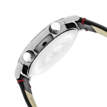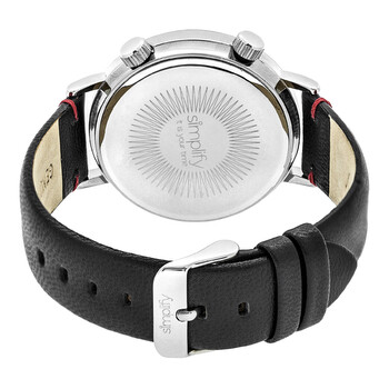 Silver-tone metal case with a black leather strap. Fixed silver-tone bezel. White dial with silver-tone hands and index hour markers. Minute markers around the outer rim. Dial Type: Analog. Quartz movement. Scratch resistant mineral crystal. Solid case back. Round case shape, case size: 43 mm, case thickness: 9 mm. Band width: 20 mm. Buckle clasp. Water resistant at 30 meters / 100 feet. Functions: hour, minute, second. Casual watch style. Simplify The 3300 White Dial Watch SIM3301.