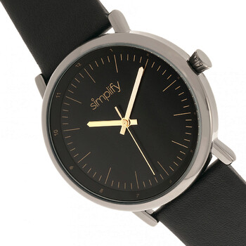 Gunmetal alloy case with a black leather strap. Fixed gunmetal alloy bezel. Black dial with gold-tone hands and index / Arabic numeral hour markers. Minute markers. Dial Type: Analog. Quartz movement. Scratch resistant mineral crystal. Pull / push crown. Solid case back. Round case shape. Case size: 39 mm. Case thickness: 8 mm. Band width: 20 mm. Tang clasp. Water resistant at 30 meters / 100 feet. Functions: hour, minute, second. The 6200 Series. Casual watch style. Watch label: Japan Movt. Simplify The 6200 Black Dial Black Leather Watch SIM6204.
