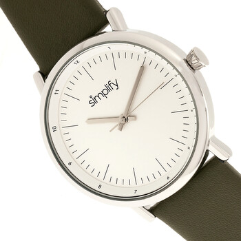 Silver-tone alloy case with a olive leather strap. Fixed silver-tone alloy bezel. White dial with silver-tone hands and index / Arabic numeral hour markers. Minute markers. Dial Type: Analog. Quartz movement. Scratch resistant mineral crystal. Pull / push crown. Solid case back. Round case shape. Case size: 39 mm. Case thickness: 8 mm. Band width: 20 mm. Buckle clasp. Water resistant at 30 meters / 100 feet. Functions: hour, minute, second. Casual watch style. Watch label: Japan Movt. Simplify The 6200 White Dial Watch SIM6201.