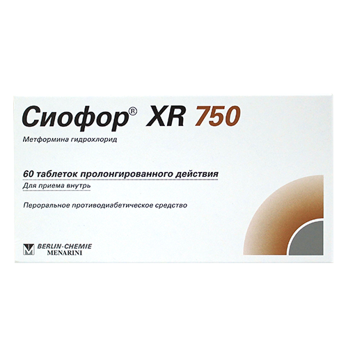 დასახელება - Siofor XR - სიოფორი XR 750მგ 60 ტაბლეტი