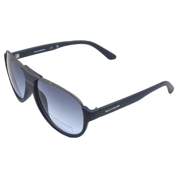 Skechers Sunglasses. Series number: SE6195. Color code: 90W. Shape: Pilot. Lens Width: 58 mm. 100% UV protection. Non-Polarized. Frame Material: Metal. Frame Color: Shiny Blue. Lenses Type: Blue Gradient. Rim Style: Full-Rim. UPC/EAN code: 889214355591. Skechers Blue Gradient Pilot Men's Sunglasses SE6195 90W 58.