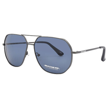 Skechers Sunglasses. Series number: SE6150. Color code: 07V. Shape: Pilot. Lens Width: 61 mm. 100% UV protection. Non-Polarized. Frame Material: Metal. Frame Color: Matte Dark Nickeltin. Lenses Type: Blue. UPC/EAN code: 889214436757. Skechers Blue Pilot Men's Sunglasses SE6150 07V 61.
