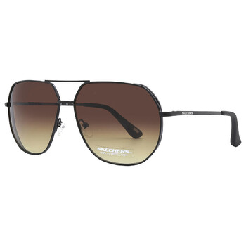 Skechers Sunglasses. Series number: SE6150. Color code: 01F. Shape: Pilot. Lens Width: 61 mm. 100% UV protection. Non-Polarized. Frame Material: Metal. Frame Color: Shiny Black. Lenses Type: Gradient Brown. Rim Style: Full-Rim. UPC/EAN code: 889214436740. Skechers Gradient Brown Pilot Men's Sunglasses SE6150 01F 61.