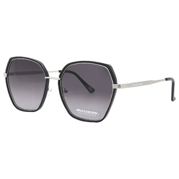 Skechers Sunglasses. Series number: SE6154. Color code: 01B. Shape: Butterfly. Lens Width: 58 mm. 100% UV protection. Non-Polarized. Frame Material: Metal. Frame Color: Shiny Black. Lenses Type: Gradient Smoke. Rim Style: Full-Rim. UPC/EAN code: 889214269508. Skechers Gradient Smoke Butterfly Ladies Sunglasses SE6154 01B 58.