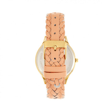 Gold-tone alloy case with a coral genuine leather strap. Fixed gold alloy bezel. Silver-tone dial with gold-tone hands. Dial Type: Analog. Quartz movement. Scratch resistant mineral crystal. Pull / push crown. Solid case back. Round case shape, case size: 36 mm, case thickness: 8 mm. Band width: 11 mm. Buckle clasp. Water resistant at 30 meters / 100 feet. Functions: hour, minute, second. Casual watch style. Watch label: Japan Movt. Item Variations: SAFSF4503. Sophie And Freda Tucson Silver Dial Ladies Watch SF4503.