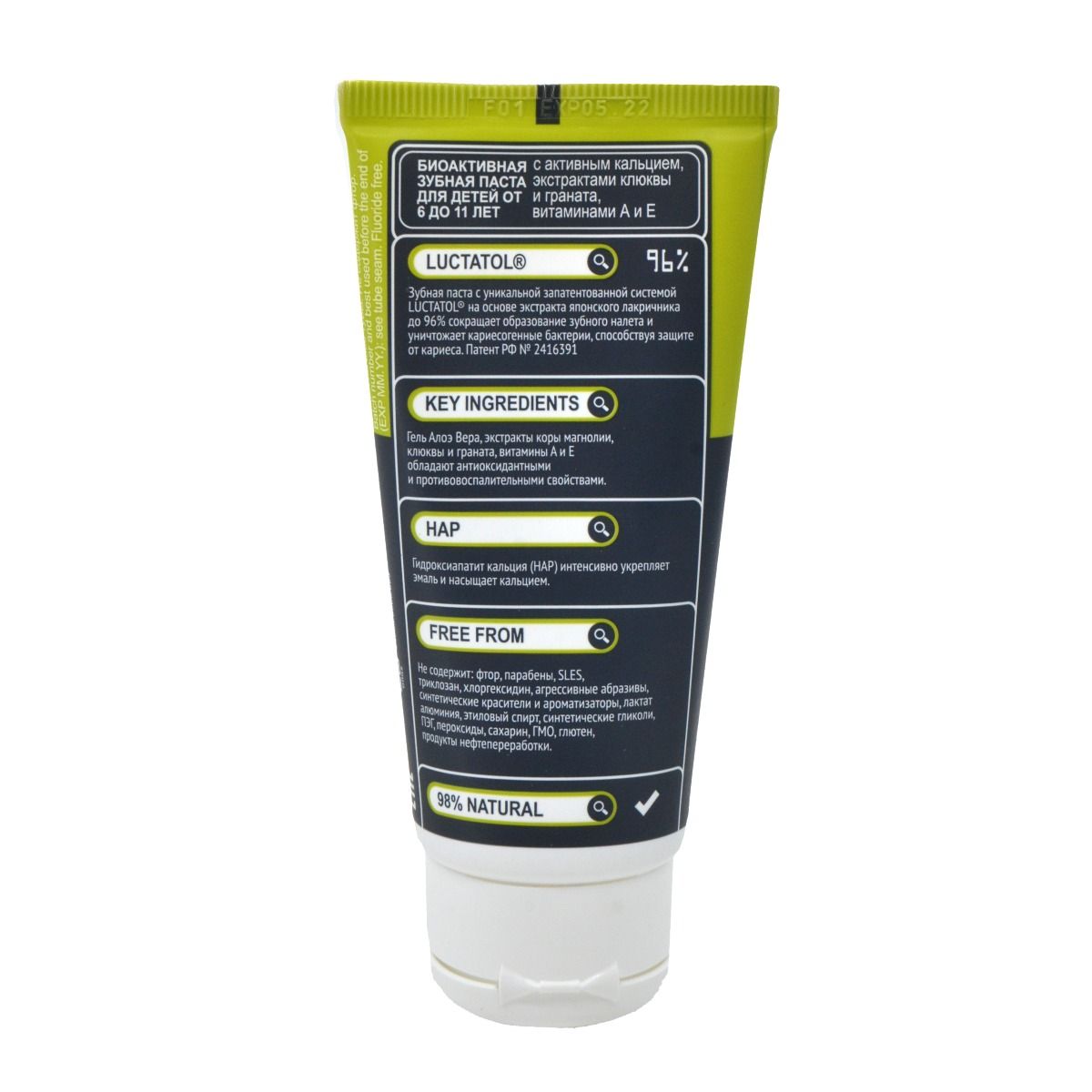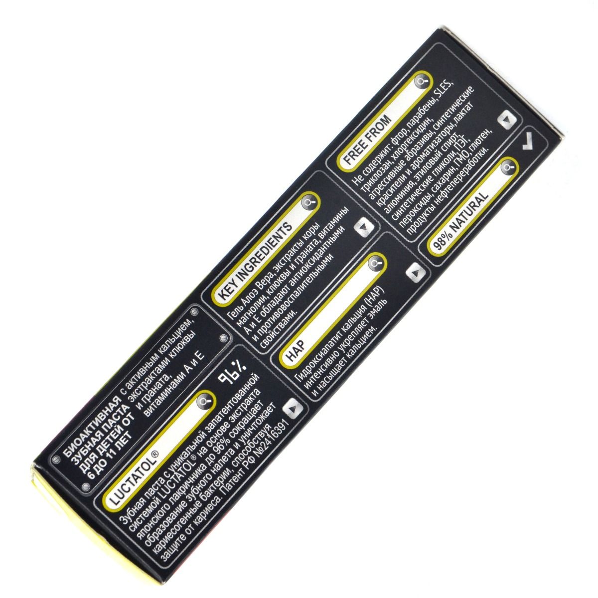 კენკრის კოქტეილის არომატიზებული კბილის პასტა 6-11 წლის ბავშვებისთვის. კარიესისა და კბილის ნადების დაცვა – LUCTATOL® – ინოვაციური დაპატენტებული კარიესის საწინააღმდეგო სისტემა, დამამშვიდებელი ეფექტი ღრძილებზე. ამაგრებს კბილის მინანქარს, იცავს კბილებს კარიესისგან, ნადებისგან და ზრუნავს ღრძილებზე. ხელს უწყობს პირის ღრუს რბილი ქსოვილების მოვლას. კბილის პასტას აქვს კენკრის ნაზი არომატი.