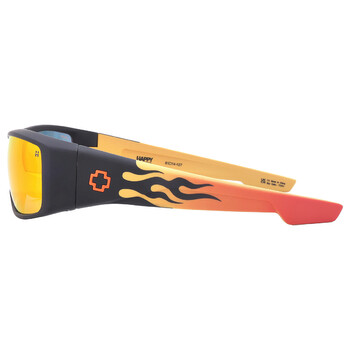 Spy Sunglasses. Series LOGAN. Series number: 1800000000083. Shape: Wrap. Lens Width: 61 mm. Lens Bridge: 13 mm. Arm Length: 124 mm. 100% UV protection. Non-Polarized. Frame Material: Plastic. Frame Color: Boo Johnson - Matte Black Orange Flames. Lenses Type: Happy Gray Green Red Mirror. Rim Style: Full-Rim. UPC/EAN code: 648478820630. Spy LOGAN Happy Gray Green Red Mirror Wrap Men's Sunglasses 1800000000083.