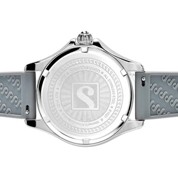 Steinhausen; since 1923 we've strived to make a impact in the watch industry with exciting designs and quality timepieces. Color By Steinhausen; vibrant colored stones, stainless steel rounded watch, easlity interchangable colored bands, 3 hands, embossed crown. Steinhausen custom embossed silicone easily interchangable bands. 38 mm stainless steel case with mineral dial window. Water resistant to 165 ft, withstands splashes or brief immersions in water but not suitable for swimming or showering. Silver-tone stainless steel case with a grey silicone strap. Fixed grey stainless steel bezel. Multi-color dial with silver-tone hands and index hour markers. Dial Type: Analog. Luminescent hands. Quartz movement. Pull / push crown. Solid case back. Round case shape, case size: 38 mm, case thickness: 2 mm. Band width: 2 mm. Buckle clasp. Water resistant at 50 meters / 165 feet. Functions: hour, minute, second. Arbon Series. Casual watch style. Watch label: Japanese. Steinhausen Arbon Multi-Color Dial Ladies Watch S01021.
