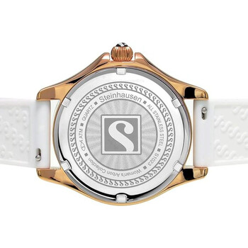 Steinhausen; since 1923 we've strived to make a impact in the watch industry with exciting designs and quality timepieces. Color By Steinhausen; vibrant colored stones, stainless steel rounded watch, easlity interchangable colored bands, 3 hands, embossed crown. Steinhausen custom embossed silicone easily interchangable bands. 38 mm stainless steel case with mineral dial window. Water resistant to 165 ft, withstands splashes or brief immersions in water but not suitable for swimming or showering. Rose gold-tone stainless steel case with a white silicone strap. Fixed white stainless steel bezel. Multi-color dial with rose gold-tone hands and index hour markers. Dial Type: Analog. Luminescent hands. Quartz movement. Pull / push crown. Solid case back. Round case shape, case size: 38 mm, case thickness: 2 mm. Band width: 2 mm. Buckle clasp. Water resistant at 50 meters / 165 feet. Functions: hour, minute, second. Arbon Series. Casual watch style. Watch label: Japanese. Steinhausen Arbon Multi-Color Dial Ladies Watch S01023.