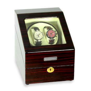 Steinhausen Heritage double watch winder with storage for up to three watches. Features ultra quiet motor and multiple modes. Cherrywood red with a piano grade varnish and a high gloss wood finish. Interior features cream colored leatherette. Includes cleaning cloth and adaptor. Dimensions: 8.0 In. X 8.0 In. X 8.0 In