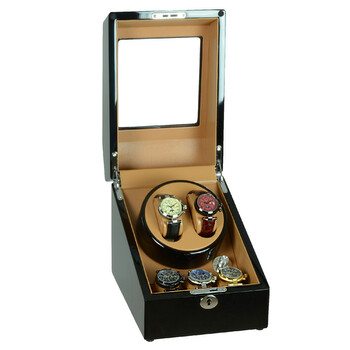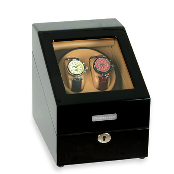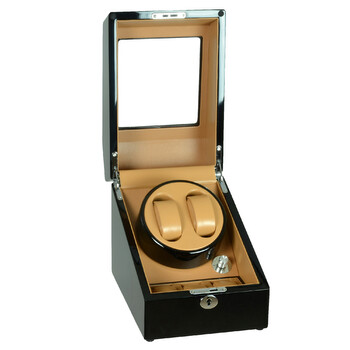 Steinhausen Heritage Onyx double watch winder storage for up to three watches. Features ultra quiet motor and multiple modes. Made from 100% wood with a piano grade varnish and a highgloss wood finish. Onyx color. Interior features cream colored leatherette. Includes cleaning cloth and adaptor. Dimensions: 8.0 In. X 8.0 In. X 8.0 In.