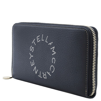 Stella Mccartney Ladies Wallets. SKU: 700251WP0057-4044. Color: Mood Indigo. Stella Mccartney Logo Continental Wallet. Crafted from pebbled leather, this wallet showcases a logo print on the front and features an all-around zip fastening. Inside, it offers a partitioned compartment and an internal zip-fastening pocket. Conscious: We've partnered with Good On You â an ethical agency that assesses brands' sustainability. This product is from a brand rated highly for its animal welfare practices. Made in Italy.