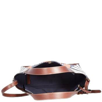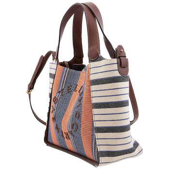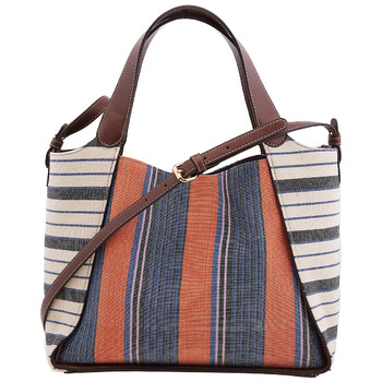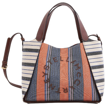 Stella McCartney Ladies Crossbody. SKU: 513860WP0372-4134. Material: Fabric;Polyamide. Color: Multicolor. Size: W:30cm x H:23cm x D:13cm. Stella McCartney Logo Lettering Stripe Pattern Tote Bag. This cotton canvas tote bag features a vertical stripe pattern, faux-leather trim, two flat top handles, an adjustable detachable shoulder strap, an applique logo, a main compartment, a removable pouch, a full lining, and a concealed magnetic fastening. 100% Fabric, 60% Polyamide, 40% Polyurethane. Made in Italy.