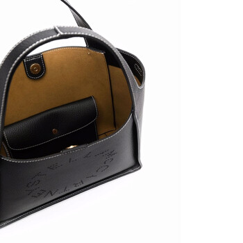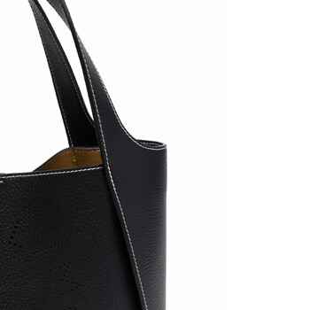 Stella McCartney Ladies Crossbody. SKU: 513860WP0057-1000. Color: Black. Size: W:31.5cm x H:22cm x D:13cm. Stella McCartney Logo Perforated Tote Bag. This faux leather tote bag features a detachable shoulder strap, two top handles, a perforated logo detail, a removable pouch, and a magnetic fastening. 67% Polyurethane, 33% Polyamide. Made in Italy.