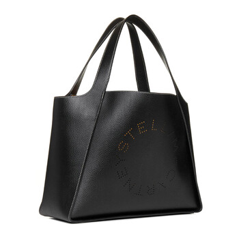 Stella McCartney Ladies Shopping Bag. Stella Logo series. SKU: 502793WP00571000. Color: Black. Size: W:40cm x H:31.5cm x D:15cm. Stella McCartney Logo Tote Bag. This tote bag features white single topstitching, two top handles, and one main compartment. 47% Polyurethane, 20% Bio polyurethane, 20% Recycled polyamide, 13% Polyamide. Made in Italy.