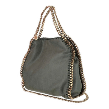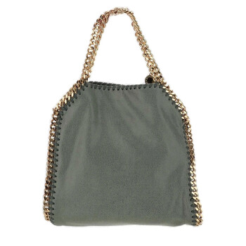 Stella McCartney Ladies Tote. SKU: 371223W9355-3030. Color: Green. Size: W:26.5cm x H:23.5cm x D:10cm. Stella McCartney Mini Falabellatop Handle Tote Bag. This tote bag features a brass and aluminium diamond-cut chain, two top handles, one shoulder strap, a main compartment with an internal slip pocket, magnetic snap fastening, an engraved ruthenium logo medallion made from zero-waste zamac, and a recycled polyester monogram lining. 100% Polyester. Made in Italy.