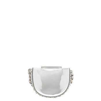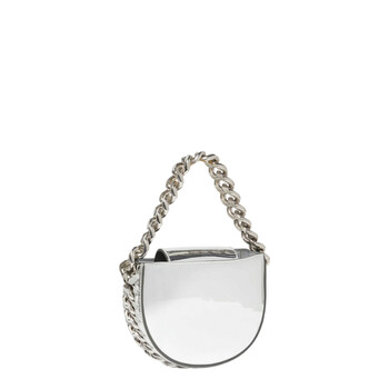 Stella McCartney Ladies Shoulder Bag. SKU: 7B0047WP0319-8101. Material: Polyester. Color: Grey. Size: W:18.5cm x H:14.5cm x D:6cm. Stella McCartney Small Frayme Mirrored Shoulder Bag. This shoulder bag features a single crossbody strap, a magnetic snap fastening for the main compartment, one internal slip pocket, an engraved vintage gold zamac medallion logo charm, and an Alter Suede lining. 40% polyester, 38% polyurethane, 22% TPU. Made in Italy.