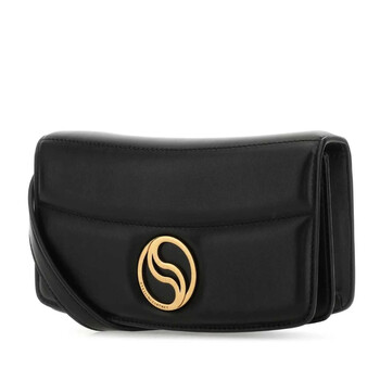 Stella Mccartney Ladies Crossbody. SKU: 7B0036 WP0110-1000. Material: Polyester. Color: Black. Size: W:20cm x H:10.5cm x D:4.5cm. Stella McCartney S-Wave Logo Plaque Crossbody Bag. This crossbody bag features a logo plaque, a foldover top with a magnetic fastening, an adjustable shoulder strap, and a spacious main compartment. 100% Recycled Polyester, 56% Polyurethane, 44% Polyester. Made in Italy.
