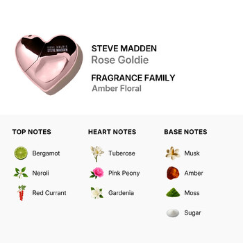 Unveil your signature scent with Steve Madden Ladies Rose Goldie Eau de Parfum Spray 3.4 oz—a radiant fragrance designed to capture the elegance and energy of modern femininity. Launched in 2025 by the renowned niche fragrance brand Steve Madden, this amber floral masterpiece showcases a fresh, yet sophisticated blend that’s perfect for daydreamers and go-getters alike.