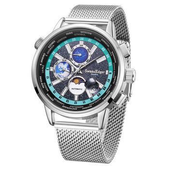 The Limited Edition Swan & Edgar Hand Assembled Blackheath Welkin Automatic Silver Black men’s watch takes its name from the street on which the Royal Observatory is located. For many, this is the closest view they will ever have of the vast and mysterious expanse above, providing near-unfettered access to the sky and heavens that may possess the answers you hope to find. Precise and intricate 163 Part 20 Jewel Hand Assembled Automatic Movement powers the arrow-like hands that glide around the star black dial. This is set within a steel IP case and is detailed with a functional world timer that provides answers anywhere across the glove. The Day, Date and Month Counters provide finishing features that include images of the earth, sky and afar. The steel bracelet and Swan & Edgar logo-engraved stainless steel caseback complete the timepiece, offering the comfortable feeling of safety and security with two feet on the ground while you dream of what secrets exist beyond the atmospher