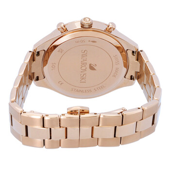 Champagne gold-tone stainless steel case and bracelet. Fixed champagne gold-tone stainless steel bezel with a blue top ring. Blue dial with champagne gold-tone hands and crystal hour markers. Minute markers around the outer rim. Dial Type: Analog. Chronograph - three sub-dials displaying: 60 second, 30 minute and 12 hour. Quartz movement. Scratch resistant mineral crystal. Pull / push crown. Solid case back. Round case shape, case size: 37 mm. Water resistant at 50 meters / 165 feet. Functions: chronograph, hour, minute, second. Octea Lux Sport Series. Sport watch style. Watch label: Swiss Made. Swarovski Octea Lux Sport Chronograph Quartz Crystal Blue Dial Unisex Watch 5632481.