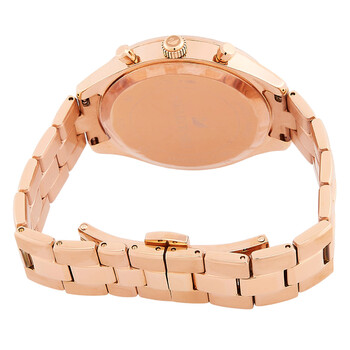 Rose gold-tone stainless steel case and bracelet. Fixed rose gold-tone stainless steel bezel. Rose gold-tone dial with crystal hour markers. Minute markers around the outer rim. Dial Type: Analog. Date display at the 4 o'clock position. Chronograph - three sub-dials displaying: 60 second, 30 minute and 12 hour. Quartz movement. Pull / push crown. Solid case back. Round case shape, case size: 37 mm. Deployment with push button release clasp. Water resistant at 50 meters / 165 feet. Functions: chronograph, date, hour, minute, second. Octea Lux Sport Series. Sport watch style. Watch label: Swiss Made. Swarovski Octea Lux Sport Chronograph Quartz Rose Gold Dial Watch 5610469.