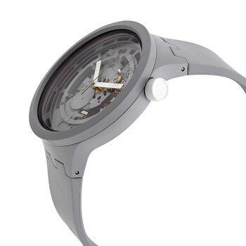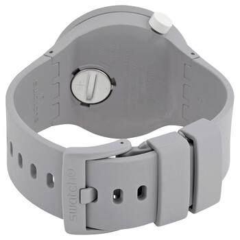 Grey bioceramic case with a grey bio-sourced material band. Fixed grey bioceramic bezel. Grey (transparent) dial with superluminova grey hands. Dial Type: Analog. Luminescent hands. Quartz movement. Scratch resistant plexiglass crystal. Pull / push crown. Solid case back. Round case shape. Case size: 47 mm. Case thickness: 11 mm. Band width: 22 mm. Tang clasp. Water resistant at 30 meters / 100 feet. Bioceramic C-grey Series. Casual watch style. Watch label: Swiss Made. Swatch Bioceramic C-grey Quartz Transparent Grey Dial Unisex Watch SB03M100.