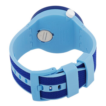 Blue bio-sourced case with a blue rubber strap. Fixed blue bio-sourced bezel. Blue dial with gold-tone hands and index hour markers. Dial Type: Analog. Luminescent hands and markers. Quartz movement. Scratch resistant acrylic crystal. Pull / push crown. Solid case back. Round case shape, case size: 47 mm, case thickness: 11.75 mm. Band width: 23 mm. Buckle clasp. Water resistant at 30 meters / 100 feet. Functions: hour, minute, second. The January Collection Series. Casual watch style. Watch label: Swiss Made. Swatch The January Collection Quartz Blue Dial Men's Watch SB05N105.