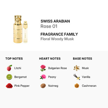 From the esteemed design house of Swiss Arabian, Rose 01 is more than just a fragrance; it's an expression of identity that transcends gender norms. This EDP spray is not just a scent, but a statement of unison and harmony, making it a must-have for those who dare to defy expectations and embrace their unique essence. Whether it's your daily companion or a special accent for occasions, Rose 01 promises to be a timeless addition to your collection.