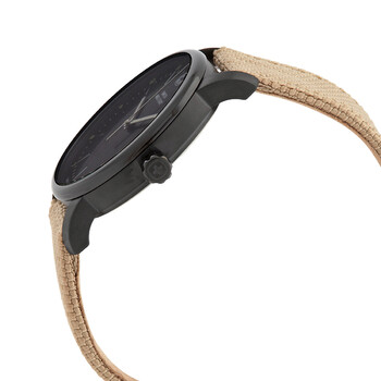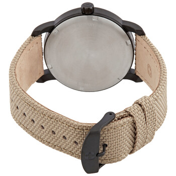 Black stainless steel case with a sand nylon strap. Fixed black stainless steel bezel. Black dial with silver-tone hands and index hour markers. Minute markers around the outer rim. Dial Type: Analog. Date display at the 3 o'clock position. Ronda Caliber 515 quartz movement. Scratch resistant sapphire crystal. Pull / push crown. Solid case back. Round case shape, case size: 42 mm. Tang clasp. Water resistant at 100 meters / 330 feet. Functions: date, hour, minute, second. Urban Classic Series. Sport watch style. Watch label: Swiss Movt. Swiss Military Urban Classic Quartz Black Dial Men's Watch 01.1741.338.