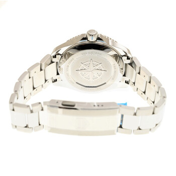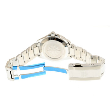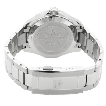Stainless steel case with a stainless steel bracelet. Uni-directional rotating stainless steel bezel. Blue dial with luminous silver-tone hands and index hour markers. Minute markers around the outer rim. Dial Type: Analog. Luminescent hands and markers. Date display at the 6 o'clock position. Automatic movement. Scratch resistant sapphire crystal. Screw down crown. Solid case back. Dodecagon case shape. Case size: 40 mm. Fold over clasp with a push button release. Water resistant at 200 meters / 660 feet. Functions: date, hour, minute, second. Aquaracer Series. Dive watch style. Tag Heuer Aquaracer Automatic Blue Dial Men's Watch WBP2111.BA0627.