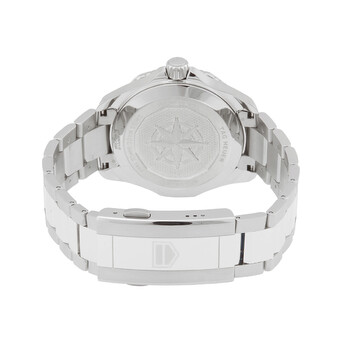 Silver-tone stainless steel case and bracelet. Silver-tone stainless steel bezel. Green dial with silver-tone hands and index hour markers. Minute markers around the outer rim. Dial Type: Analog. Luminescent hands and markers. Date display at the 6 o'clock position. TAG Heuer Calibre 5 Automatic movement, based upon ETA 2824-2, containing 26 Jewels, bitting at 28800 vph, and has a power reserve of approximately 38 hours. Scratch resistant sapphire crystal. Screw down crown. Solid case back. Round case shape, case size: 40 mm. Deployment with push button release clasp. Water resistant at 200 meters / 660 feet. Functions: date, day, hour, minute, second. Additional Info: original box, international warranty card, manual (complete accessories). Aquaracer Series. Luxury watch style. Watch label: Swiss Made. Tag Heuer Aquaracer Automatic Green Dial Men's Watch WBP2115.BA0627.