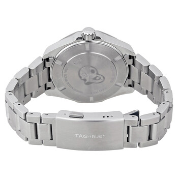Stainless steel case with a stainless steel bracelet. Bi-directional rotating stainless steel bezel with a red and blue aluminium (Pepsi) ring showing 24 hour markers. Black opalin (vertical linear) dial with luminous silver-tone hands and index hour markers. Minute markers around the outer rim. Dial Type: Analog. Luminescent hands and markers. Date display at the 3 o'clock position. Tag Heuer calibre 7 automatic movement with a 42 to 46-hour power reserve. Scratch resistant sapphire crystal. Screw down crown. Solid case back. Dodecagon case shape. Case size: 43 mm. Case thickness: 12 mm. Bracelet width: 21 mm. Fold over clasp with a safety release. Water resistant at 300 meters / 1000 feet. Functions: GMT, second time zone, hour, minute, second, date. Dive watch style. Watch label: Swiss Made. Tag Heuer Aquaracer Automatic Pepsi Bezel Men's Watch WAY201F.BA0927.
