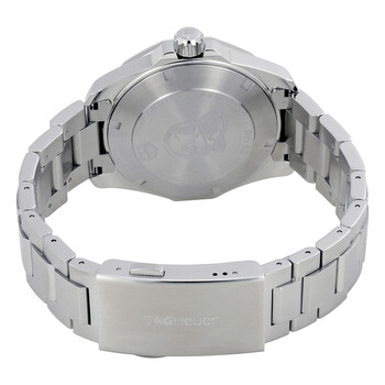 Stainless steel case with a stainless steel bracelet. Uni-directional rotating stainless steel bezel with a black aluminum top ring. Black dial with luminous silver-tone hands and index hour markers. Minute markers around the outer rim. Dial Type: Analog. Luminescent hands and markers. Date display at the 3 o'clock position. Quartz movement. Scratch resistant sapphire crystal. Screw down crown. Solid screw-in case back with a diving bell engraving. Case size: 41 mm. Case thickness: 14 mm. Dodecagon case shape. Deployment clasp. Water resistant at 300 meters / 1000 feet. Functions: date, hour, minute, second. Sport watch style. Watch label: Swiss Made. Item Variations: WAY111ABA0928. Tag Heuer Aquaracer Black Dial Quartz Men's Watch WAY111A.BA0928.