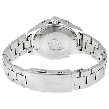 Stainless steel case with a stainless steel bracelet. Unidirectional stainless steel bezel with blue ceramic top ring. Blue dial with horizontal ridge pattern with luminous hands and index hour markers. Minute markers around the outer rim. Dial Type: Analog. Luminescent hands and markers. Date display at the 3 o'clock position. Automatic movement with a 38-hour power reserve. Scratch resistant sapphire crystal. Screw down crown. Solid case back. Case diameter: 41 mm. Case thickness: 13 mm. Dodecagon case shape. Band width: 20 mm. Deployment clasp. Water resistant at 500 meters / 1650 feet. Functions: date, hour, minute, second. Luxury watch style. Watch label: Swiss Made. Tag Heuer Aquaracer Calibre 5 Blue Dial Stainless Steel Automatic Men's Watch WAK2111.BA0830.