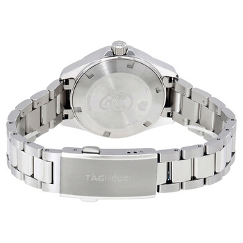 Stainless steel case with a stainless steel bracelet. Uni-directional rotating stainless steel bezel set with 35 diamonds. White mother of pearl dial with luminous silver-tone hands and diamond hour markers. Minute markers around the outer rim. Dial Type: Analog. Luminescent hands and markers. Date display at the 3 o'clock position. Quartz movement. Scratch resistant sapphire crystal. Screw down crown. Solid case back. Dodecagon case shape. Case size: 32 mm. Case thickness: 9.5 mm. Deployment clasp with a push button release. Water resistant at 300 meters / 1000 feet. Functions: date, hour, minute, second. Additional Info: bezel set with 35 diamonds (0.61 ct). Dress watch style. Watch label: Swiss Made. Tag Heuer Aquaracer Diamond White Mother of Pearl Dial Ladies Watch WBD1315.BA0740.