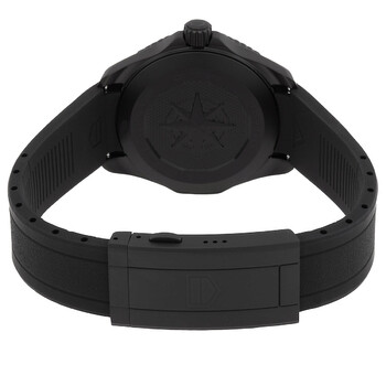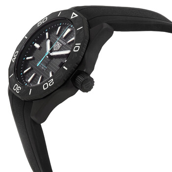 Black stainless steel case with a black rubber strap. Black stainless steel bezel. Black dial with black hands and index hour markers. Minute markers around the outer rim. Dial Type: Analog. Luminescent hands and markers. Date display at the 3 o'clock position. Tag Heuer Calibre TH50-00 quartz movement. Scratch resistant sapphire crystal. Solid case back. Round case shape, case size: 40 mm. Deployment with push button release clasp. Water resistant at 200 meters / 660 feet. Functions: date, hour, minute, second. Additional Info: original box, international warranty card, manual (complete accessories). Aquaracer Series. Luxury watch style. Watch label: Swiss Made. Tag Heuer Aquaracer Quartz Black Dial Men's Watch WBP1112.FT6199.