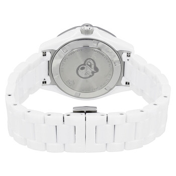 White ceramic case with a white ceramic bracelet. Fixed stainless steel bezel with a white ceramic top ring set with diamonds. White dial with luminous silver-tone hands and index hour markers. Minute markers around the outer rim. Dial Type: Analog. Luminescent hands and markers. Date display at the 3 o'clock position. Quartz movement. Scratch resistant sapphire crystal. Screw down crown. Solid case back. Case size: 35 mm. Case thickness: 10 mm. Dodecagon case shape. Bracelet width: 20 mm. Deployment clasp with a push button release. Water resistant at 300 meters / 1000 feet. Functions: date, hour, minute, second. Luxury watch style. Watch label: Swiss Made. Tag Heuer Aquaracer White Dial Ladies Watch WAY1396.BH0717