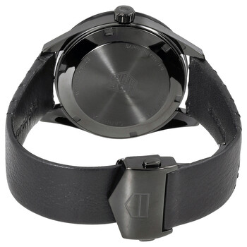 Black (titanium carbide coated) stainless steel case with a black (quilted) leather strap. Fixed black (titanium carbide coated) stainless steel bezel set with diamonds. Anthracite dial with luminous rose gold-tone hands and index hour markers. Minute markers around the outer rim. Dial Type: Analog. Luminescent hands and markers. Date display at the 3 o'clock position. Quartz movement. Scratch resistant sapphire crystal. Pull / push crown. Solid case back. Round case shape. Case size: 39 mm. Band width: 19 mm. Deployment clasp. Water resistant at 100 meters / 330 feet. Functions: date, hour, minute, second. Luxury watch style. Watch label: Swiss Made. Tag Heuer Carrera Anthracite Dial Ladies Watch WAR1115.FC6392.