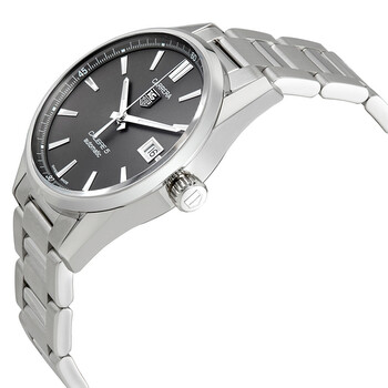 Stainless steel case with a stainless steel bracelet. Fixed stainless steel bezel. Anthracite dial with luminous silver-tone hands and index hour markers. Minute markers around the outer rim. Dial Type: Analog. Luminescent hands and markers. Date display at the 3 o'clock position. TAG Heuer calibre 5 automatic movement, based upon ETA 2824-2, containing 26 Jewels, bitting at 28800 vph, and has a power reserve of approximately 38 hours. Scratch resistant sapphire crystal. Pull / push crown. Skeleton case back. Round case shape. Case size: 39 mm. Case thickness: 13 mm. Band width: 20 mm, band length: 7 inches. Deployment clasp. Water resistant at 100 meters / 330 feet. Functions: date, hour, minute, second. Casual watch style. Watch label: Swiss Made. Item Variations: WAR211C BA0782, WAR211C-BA0782, WAR211C/BA0782, WAR211CBA0782. Tag Heuer Carrera Anthracite Dial Men's Watch WAR211C.BA0782.