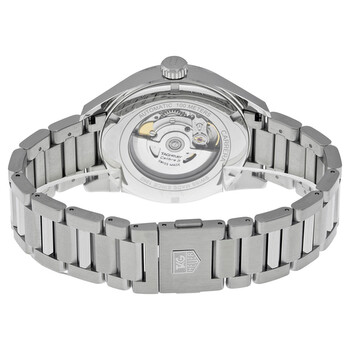 Stainless steel case with a stainless steel bracelet. Fixed stainless steel bezel. Black dial with luminous rose gold-tone hands and index hour markers. Minute markers around the outer rim. Dial Type: Analog. Luminescent hands and markers. Day of the week and date display at the 3 o'clock position. TAG Heuer calibre 5 automatic movement, based upon ETA 2824-2, containing 26 Jewels, bitting at 28800 vph, and has a power reserve of approximately 38 hours. Scratch resistant sapphire crystal. Pull / push crown. Transparent case back. Round case shape. Case size: 41 mm. Case thickness: 12 mm. Band width: 22 mm. Band length: 9 inches. Fold over clasp with a double push button release. Water resistant at 100 meters / 330 feet. Functions: date, day, hour, minute, second. Dress watch style. Watch label: Swiss Made. Item Variations: WAR201C BA0723, WAR201C-BA0723, WAR201C/BA0723, WAR201CBA0723. Tag Heuer Carrera Calibre 5 Black Dial Men's Watch WAR201CBA0723.