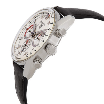 Stainless steel case with a leather strap. Fixed stainless steel bezel. Whtie dial with index hour markers. Minute markers around the outer rim. Dial Type: Analog. Luminescent hands and markers. Date display at the 12 o'clock position. Chronograph - three sub-dials displaying: 60 second, 30 minute and 12 hour. Tag Heuer Calibre TH20-00 automatic movement with an 80-hour power reserve. Scratch resistant sapphire crystal. Transparent see through case back. Round case shape, case size: 39 mm. Deployment with push button release clasp. Water resistant at 100 meters / 330 feet. Functions: chronograph, date, hour, minute, second. Additional Info: original box, manual (complete accessories). Carrera Series. Luxury watch style. Watch label: Swiss Made. Tag Heuer Carrera Chronosprint x Porsche Chronograph Automatic Men's Watch CBS2011.FC6529.